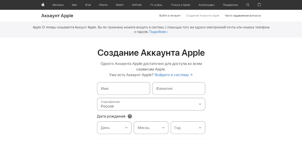 - Введите имя и фамилию, дату рождения, выберите страну – НЕ РОССИЮ (например, США – здесь работает большинство приложений, которых нет в российском сегменте);