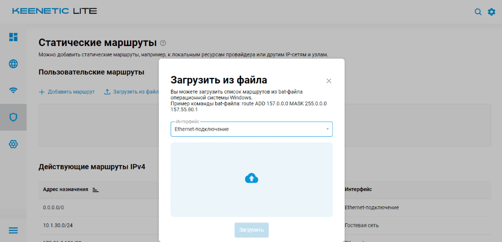 При загрузке из файла выберите соответствующий интерфейс (для VPN).